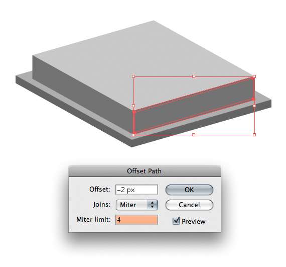 执行对象菜单>路径>位移路径,创建日历上半部分的边线。输入的数值如下所示。我们可以给日历每一侧面的小边线上增加高光或者是渐变,这样一个小的细节就能提升出图片的整体质感。