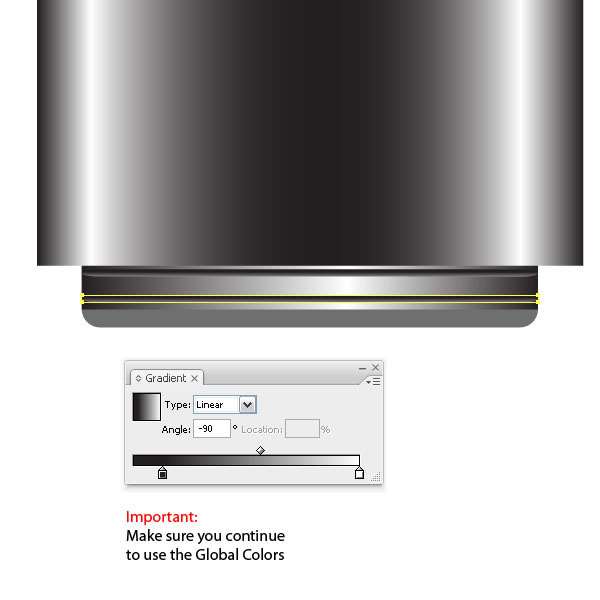 6. 第2个矩形应用线性渐变。我们必须要确定我们使用的是我们之前设置的全局色。选中矩形,切到渐变调板,把想要的色板拖移到渐变的滑动块上。如果没有选中对象的话,渐变将不起作用。