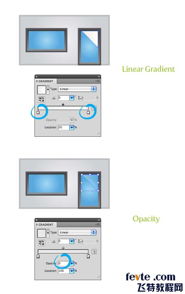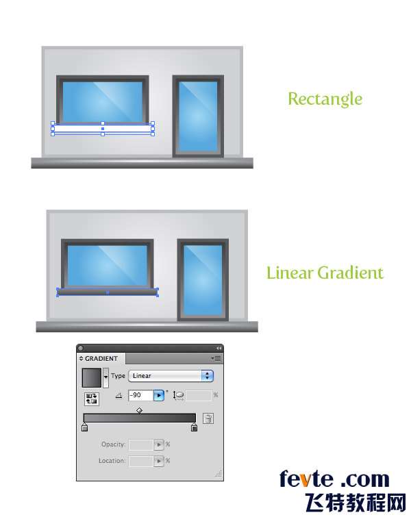 4:选择窗子和门两个矩形,执行90度的线性渐变,效果如图: