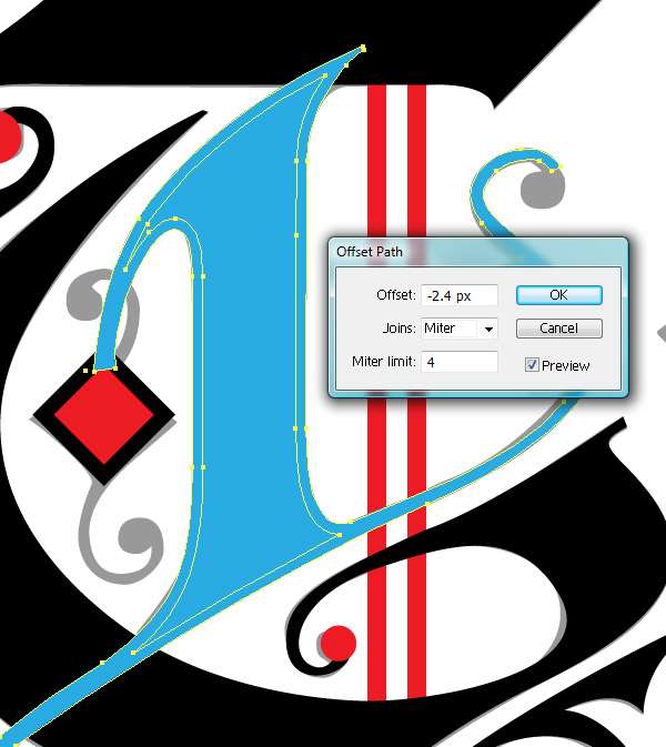 Then trace the… swirly thing near the center.然后跟踪...旋风,中心附近的事。 Once you've done that, go to Object > Path > Offset Path.一旦你这样做,到对象“>路径>偏移路径。 Use the values shown below.使用如下所示的值。