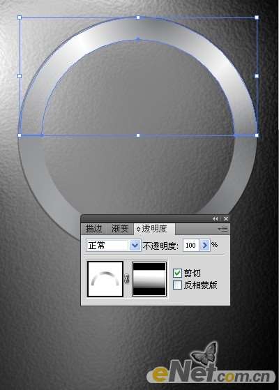 5.选择上半部的圆形填充渐变颜色设置渐变如图6所示,得到如图7所示效果。