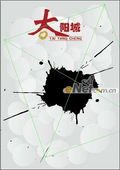 11.选择“文字工具”在图中,在图中输入太阳城的英文字母,然后应用“直线工具”给文字绘制上下线,得到如图11所示效果。