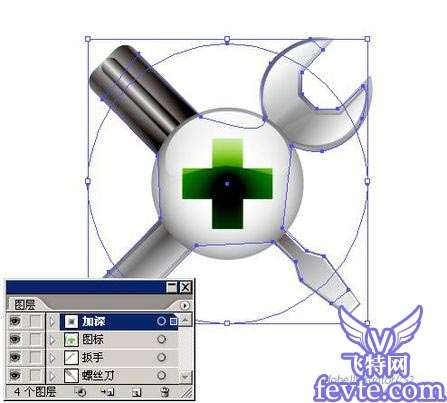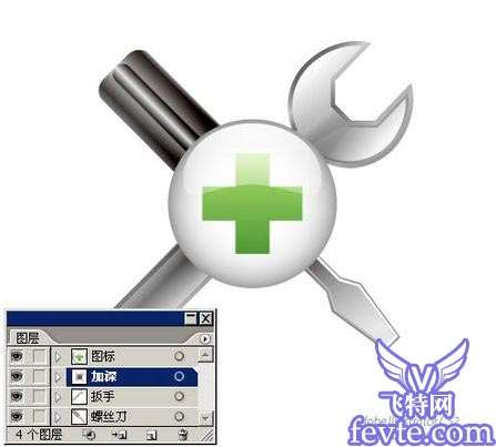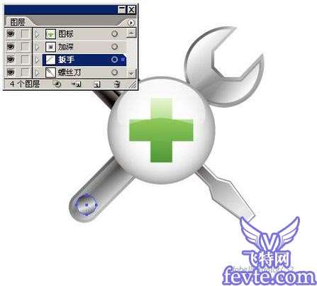 将螺丝刀的图层选中,使用选择工具将其移至扳手处,并将左端对齐扳手的左端。