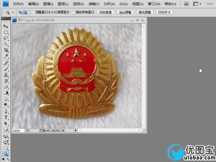 2、在ps里打开一张有背景的帽徽图片,如下图