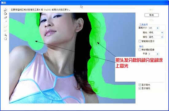图8:在高光的下部区域任意处用填充工具点击,这个区域就会变成兰色