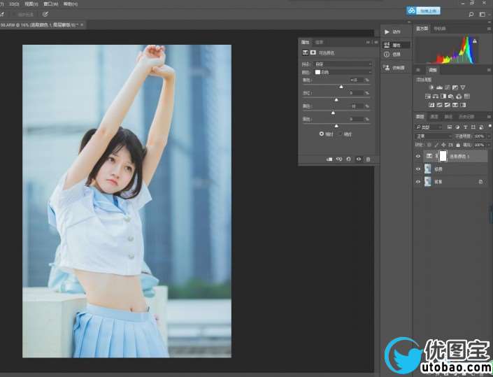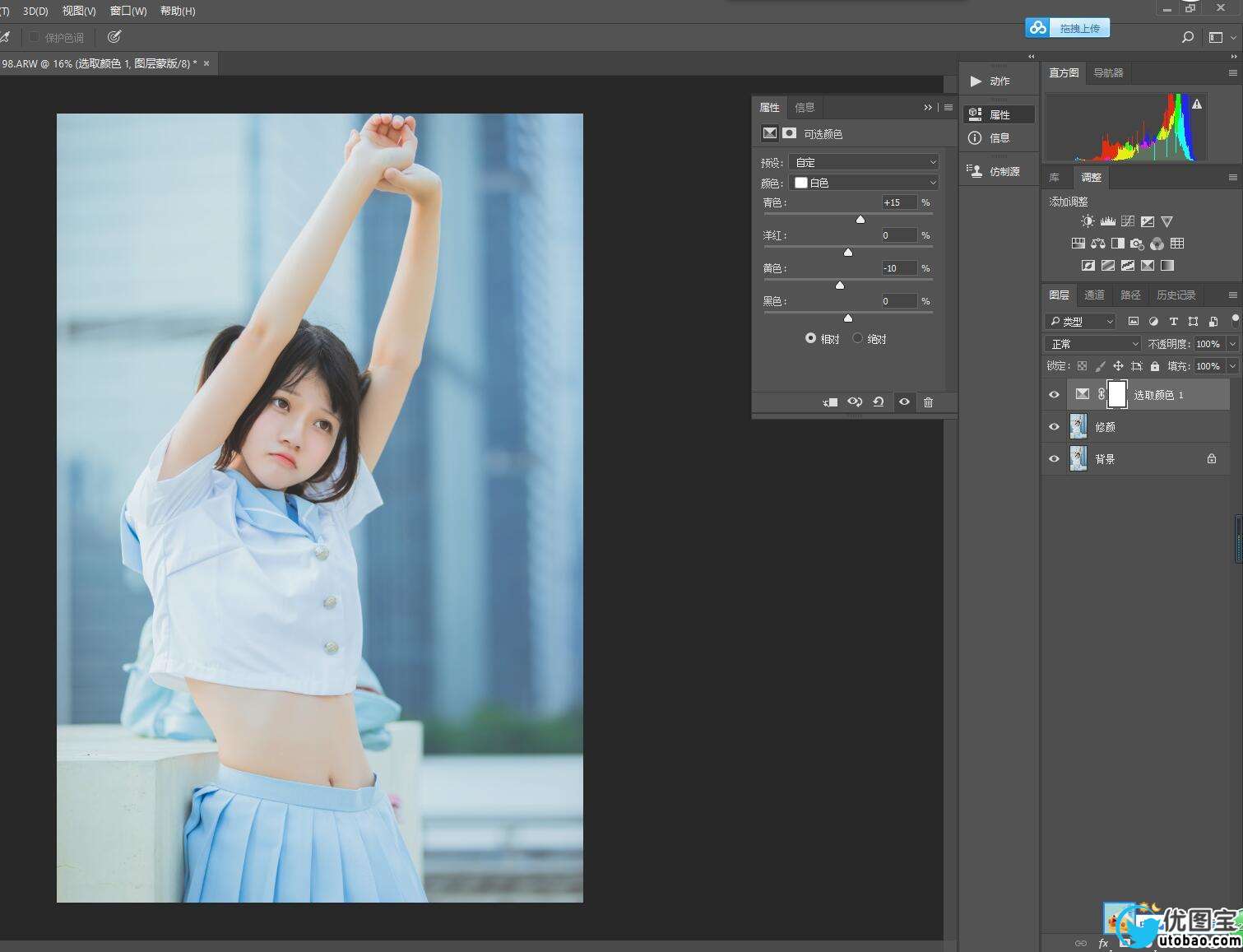 总之我先用可选颜色给画面的白色部分再加了青蓝色,
