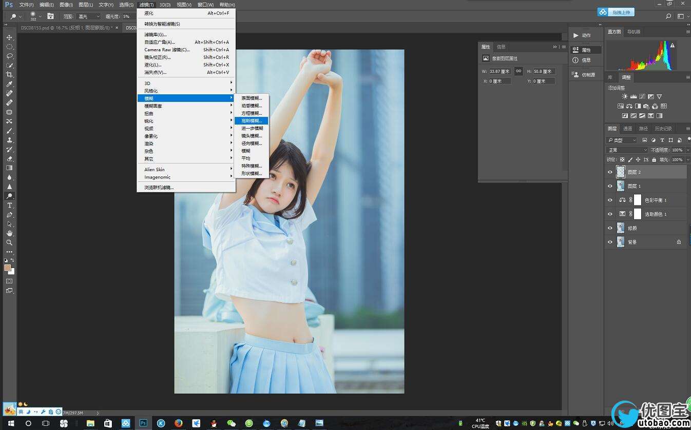 对这个图层进行一次高斯模糊(滤镜->高斯模糊),像素我用了35