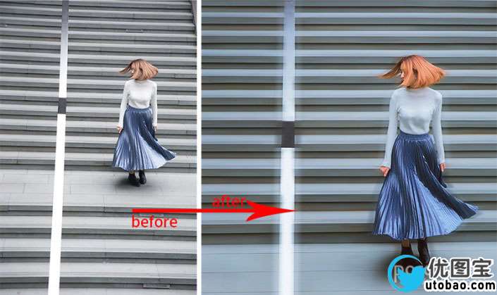 1、整体画面调整1)首先利用裁剪工具,对画面进行二次构图,排除不必要的地方,突出画面中心;2)运用印章工具,把楼梯上不干净的东西去掉;(按住Alt键吸取干净相似的地方,去盖住想去掉的瑕疵,用污点修补工具也能达到同等效果)