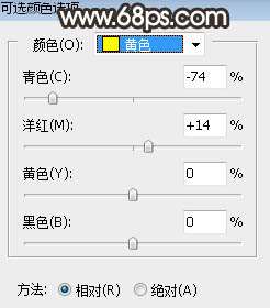 2、创建可选颜色调整图层,对黄、绿、青进行调整,参数设置如图2 - 4,效果如图5。这一步给图片增加橙黄色。