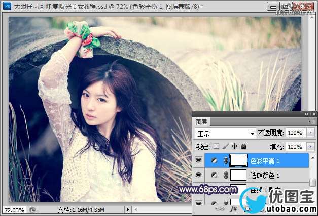 8、按CTRL+J复制一层色彩平衡调图层,并擦去人物脸部不需要的部分,效果如图。