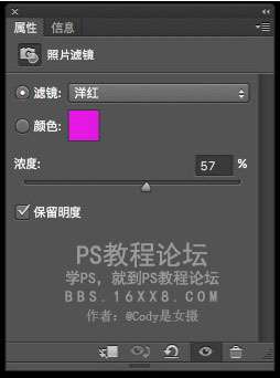 只需要通过【照片滤镜】这个功能,可以调出你想要的色彩。先给照片加了洋红,浓度具体自己调整,没有固定数字。