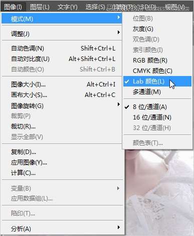 首先,将打开图像文件的模式由“RGB颜色”转为“Lab颜色”,如图1-3所示。