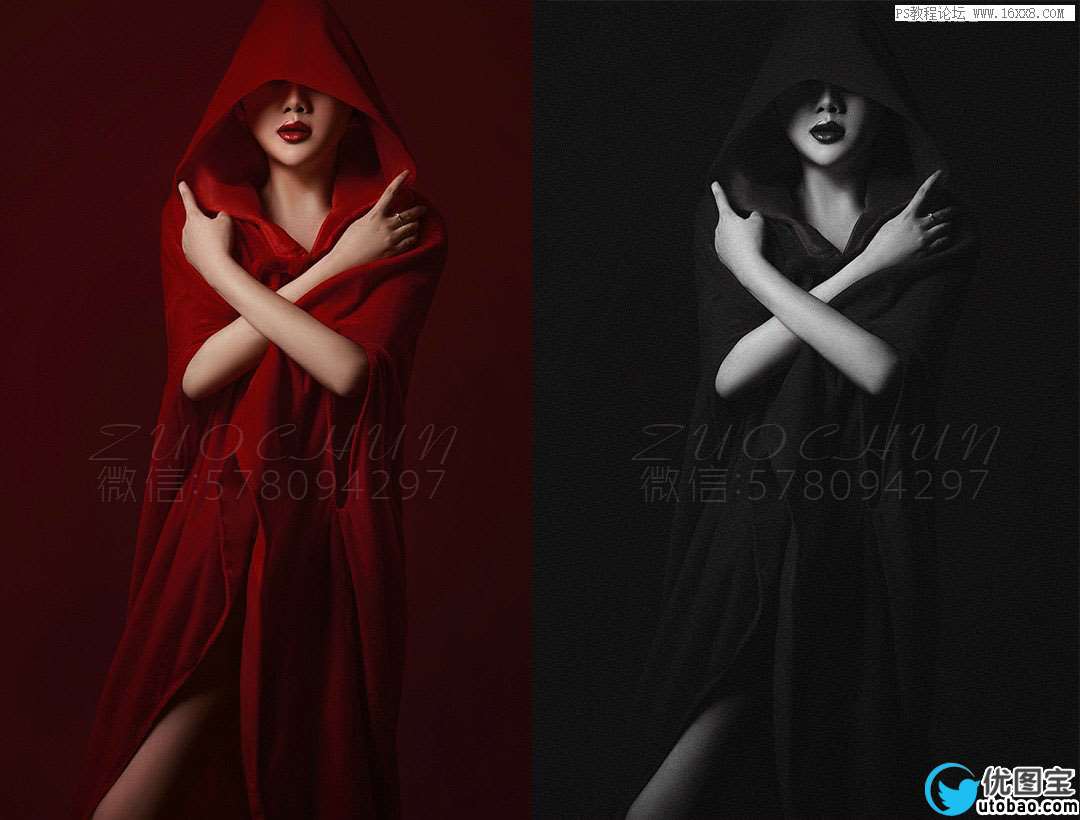 4:在把红色适当压暗,可选颜色(黑色-17)