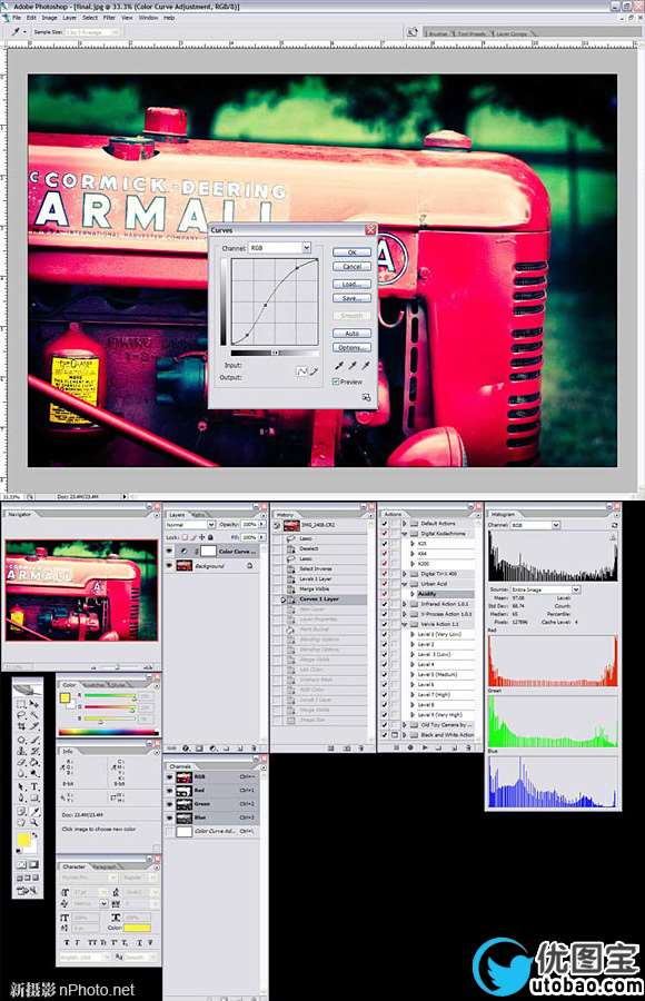 要使数码照片获得LOMO效果,我们就需要模拟这种正片负冲的效果。