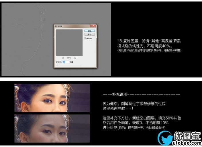 16、复制图层,滤镜~其他~高反差保留,模式行为线性光,不透明度40%。