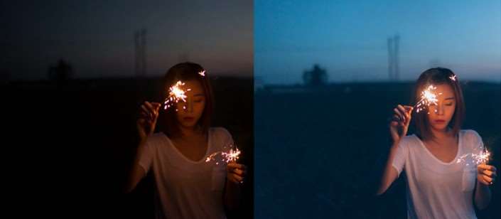 原片画面死黑一片,没有视觉感,后期调整后,增加了蓝色调,让画面看上去更舒服有感觉。