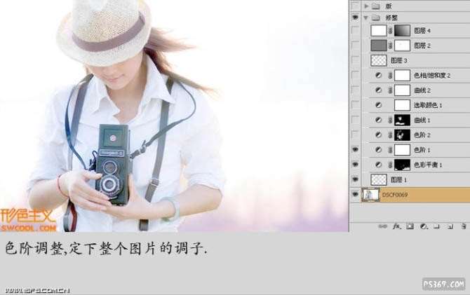 5、再用色阶及其他调整图层调整局部及整体颜色,具体参数设置如下图,图层参数如下图右。