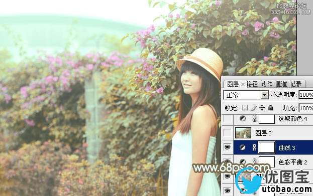 11、创建曲线调整图层,对RGB、绿、蓝通道进行调整,参数及效果如下图。这一步同样把图片主色调淡一点。