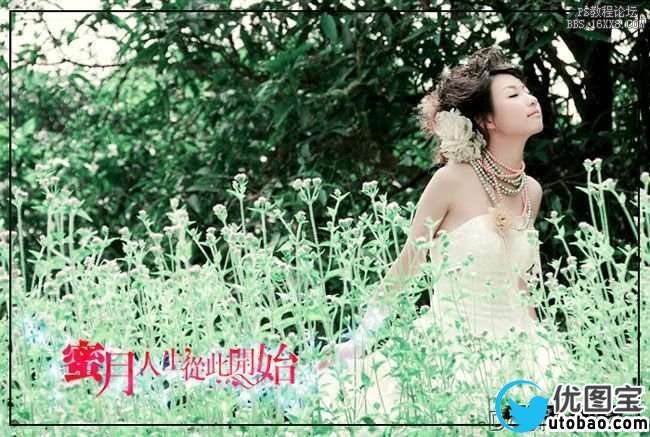 本教程介绍较为简单的青绿色婚片调色方法。大致过程:先在Lab模式下用曲线调成图片的主色。然后回到RGB颜色下稍微加强一些色彩层次及细节即可。