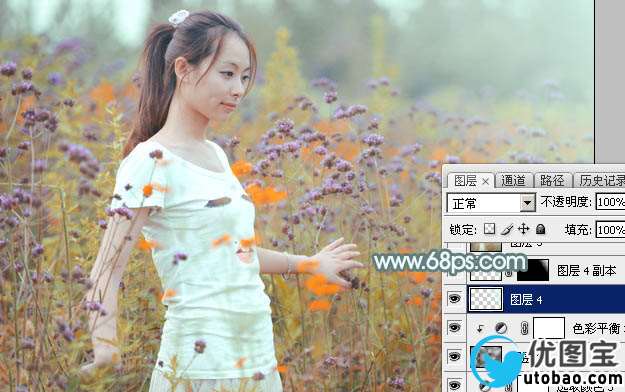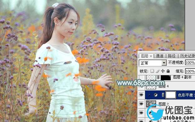 9、创建色彩平衡调整图层,对阴影,高光进行调整,参数及效果如下图。这一步给图片高光部分增加淡黄色。