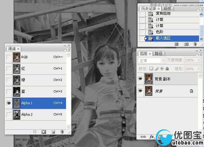一、拷贝背景图层,计算出中间调区域、暗调区域。