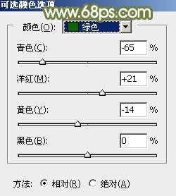 1、打开素材图片,创建可选颜色调整图层,对黄、绿、白,黑进行调整,参数设置如图1- 4,效果如图5。这一步给图片增加柔和的黄色。