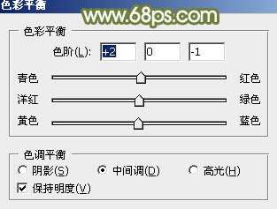 6、创建色彩平衡调整图层,对阴影、中间调,高光进行调整,参数设置如图24- 26,效果如图27。这一步同样给图片增加红褐色。