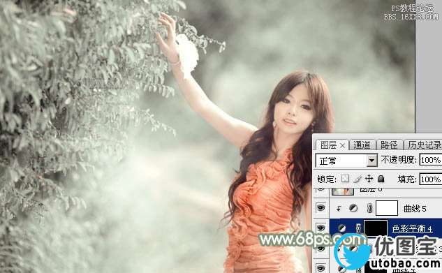 最后给人物磨一下皮,把背景局部稍微模糊处理,再微调一下整体颜色,完成最终效果。