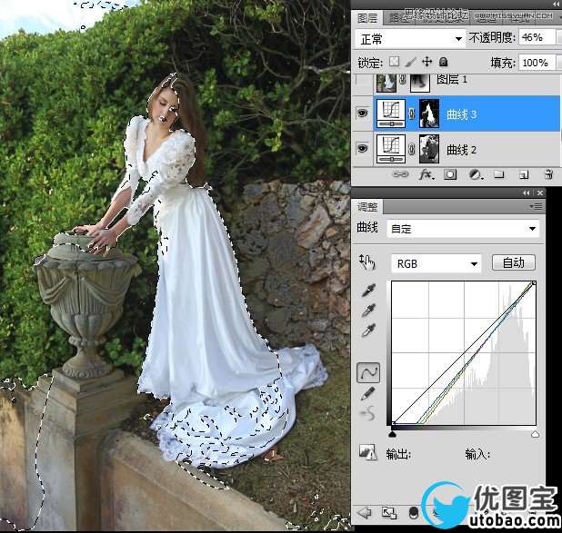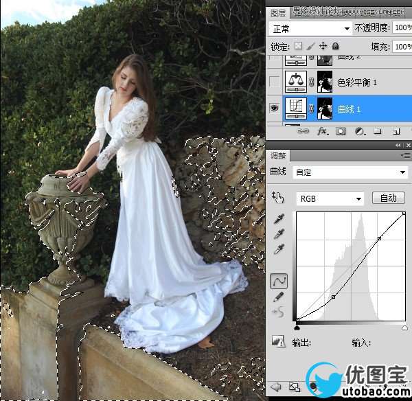 4、 对人物进行提亮,设置曲线调整。设置如图。