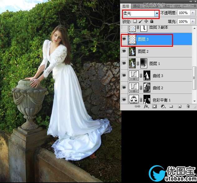6、 提取高光,复制三层。对第一层执行高斯模糊,混合模式改柔光。第二层混合模式改为滤色;第三层正常,降低不透明度为60%左右。