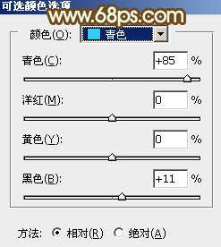 1、打开素材图片,创建可选颜色调整图层,对绿色,青色进行调整,参数及效果如下图。这一步给图片增加青绿色。