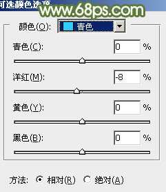 7、创建可选颜色调整图层,对黄、绿,青,参数设置如图19- 21,效果如图22。这一步给图片增加淡黄色。