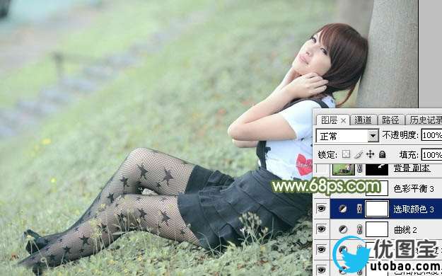 1、打开素材图片,创建可选颜色调整图层,对黄色,绿色进行调整,参数设置如图1,2,效果如图3。这一步把图片中的绿色调淡一点。