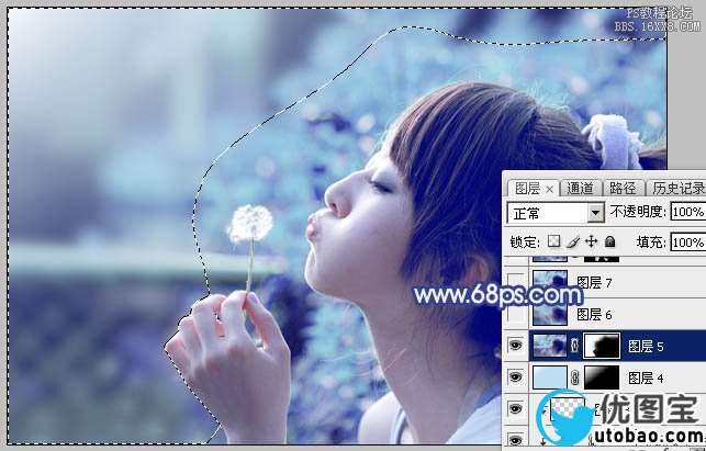 8、把背景图层复制一层,按Ctrl+ Shift + ] 置顶,按住Alt键添加图层蒙版,用白色画笔把人物部分擦出来,效果如下图。