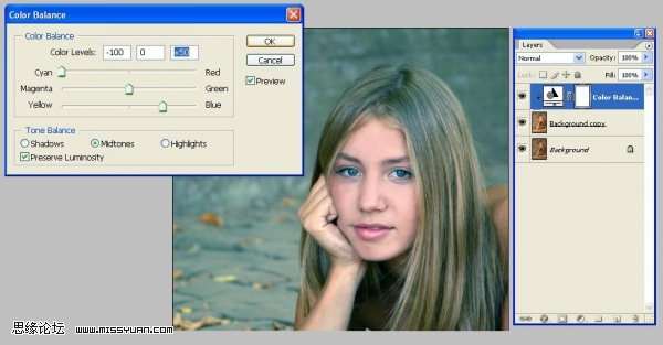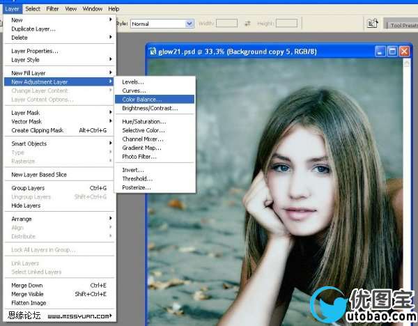 图层-新建调整图层-色彩平衡,记住点选使用前一层创建剪贴蒙板
