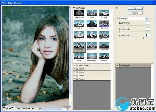 复制第三个图层副本:图层-复制图层;滤镜-艺术效果-海报边缘