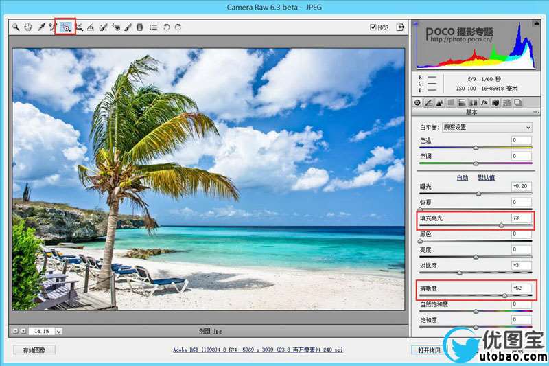 使用目标调整工具,有选择性地调整画面明暗对比,提升画面的通透感。