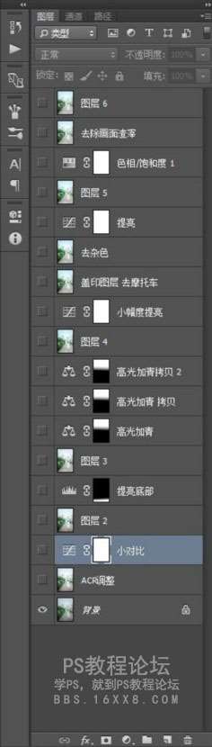 下边为整个PS调色步骤,需要点开每个小眼睛查看效果。