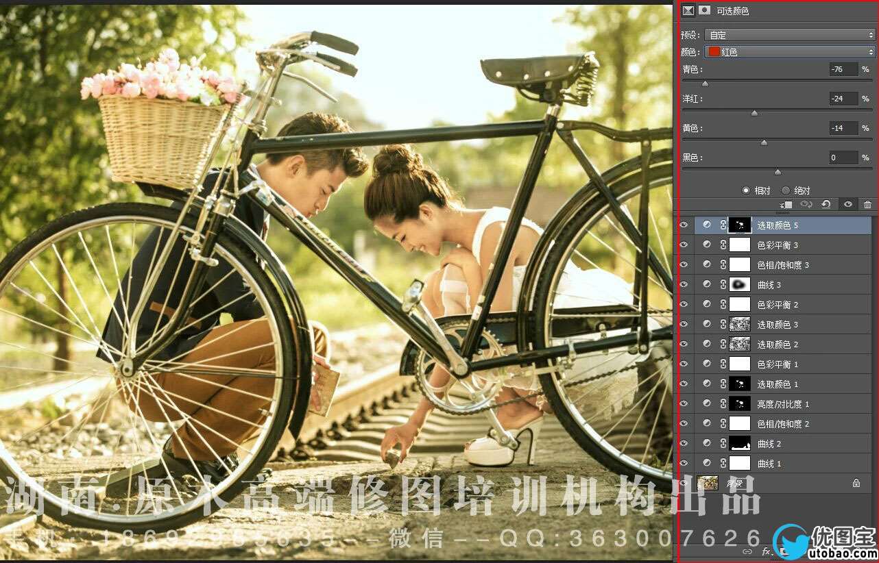 7.重复上一次选区,利用可选颜色继续抽调一些黄和调节下黄色的互补色!