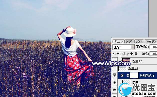 6、创建可选颜色调整图层,对红,黄进行调整,参数设置如图20,21,效果如图22。这一步给图片增加橙黄色。
