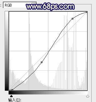 23、创建曲线调整图层,把RGB通道压暗一点,参数设置如图45,确定后把蒙版填充黑色,然后用柔边白色画笔把人物底部区域涂暗,效果如图46。