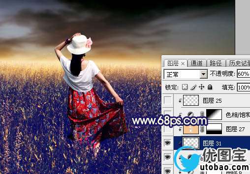 26、用自己喜欢的方法,给图片底部增加暗角,其它暗部可以适当加强一下,效果如下图。