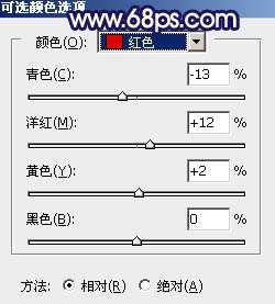 4、创建可选颜色调整图层,对红、黄、中性、黑进行调整,参数设置如图10 - 13,确定后创建剪切蒙版,效果如图14。这一步给图片暗部增加橙红色。