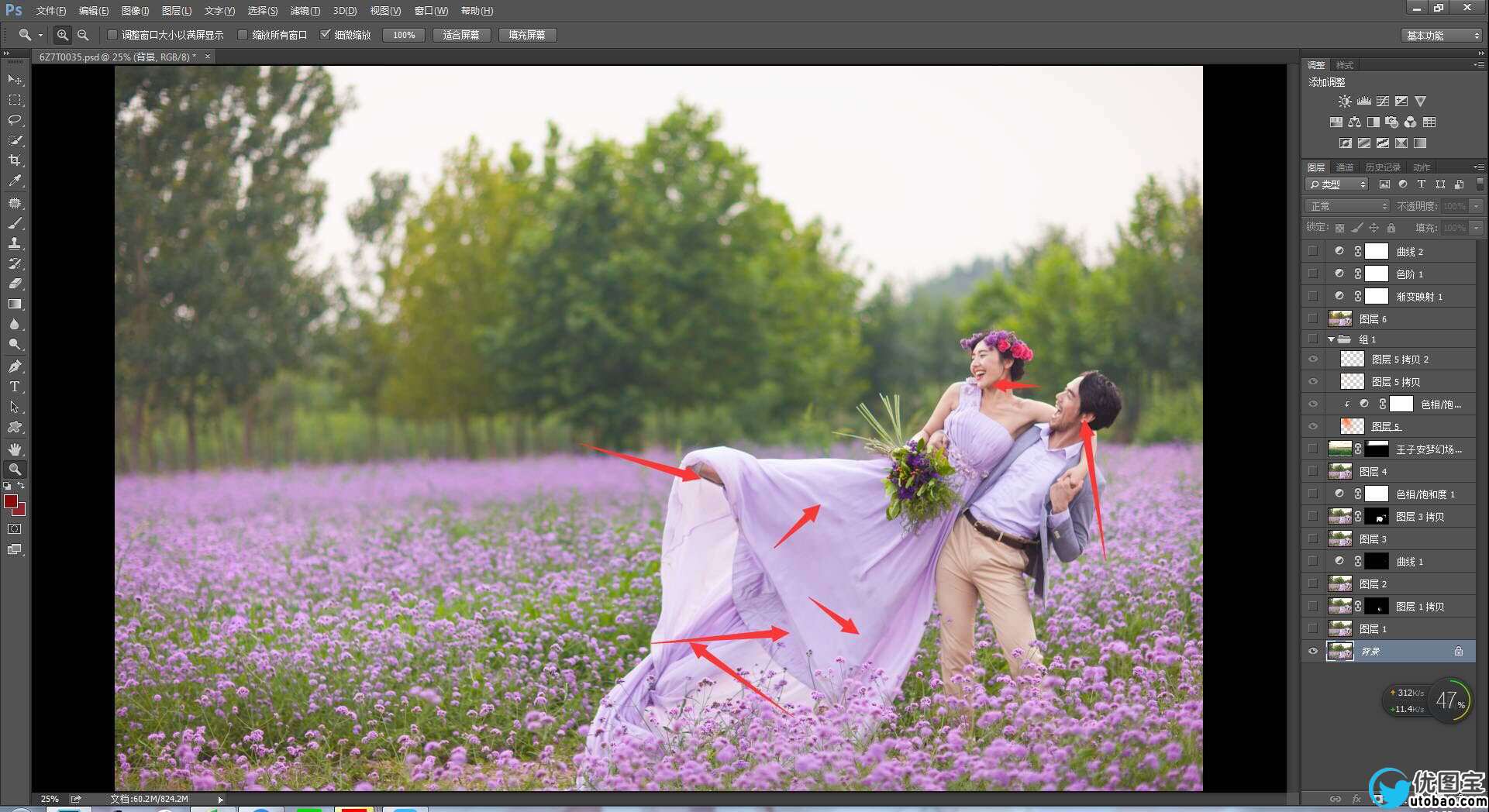 薰衣草婚纱照片调色实例,后期主要调出夕阳偏活泼风格,喜欢的一起练习一下。