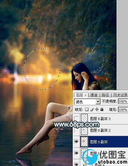 20、按Ctrl + J 把当前图层复制一层,混合模式改为“滤色”,不透明度改为:100%,效果如下图。