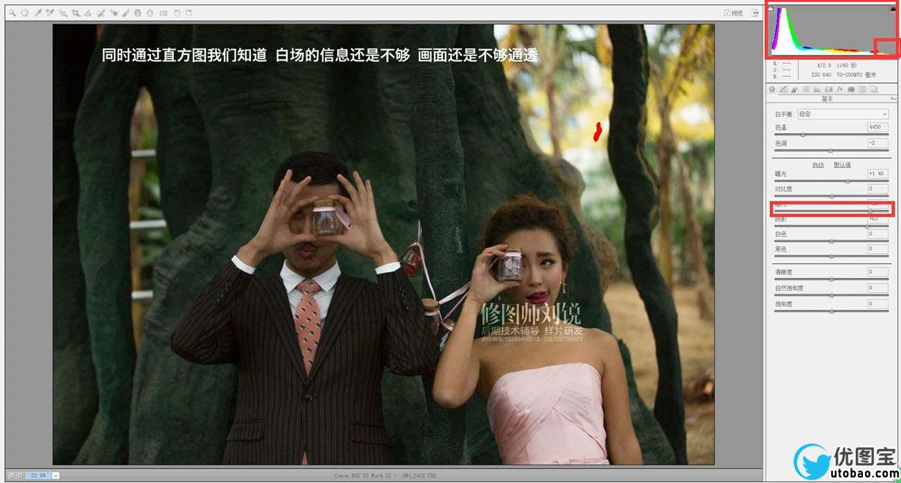 那么最简单就是让曝光+,让灰度过度到高光区域,注意不要过曝。