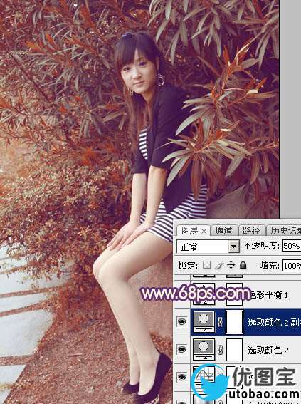 13、按Ctrl+ J 把当前可选颜色调整图层复制一层,不透明度改为:50%,效果如下图。