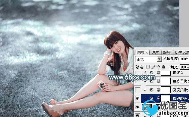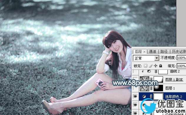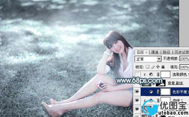 10、把背景图层复制一层,按Ctrl + Shift + ] 置顶,进入通道面板,选择绿色通道,按Ctrl + A 全选,按Ctrl + C 复制,选择蓝色通道,按Ctrl + V 粘贴。点RGB通道返回图层面板。用钢笔把人物部分抠出来,复制到新的图层,如下图。