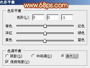 6、创建色彩平衡调整图层,对阴影、中间调、高光进行调整,参数设置如图16- 18,确定后把蒙版填充黑色,用白色画笔把人物脸部及肤色部分擦出来,效果如图19。这一步适当给人物的肤色部分增加橙黄色。