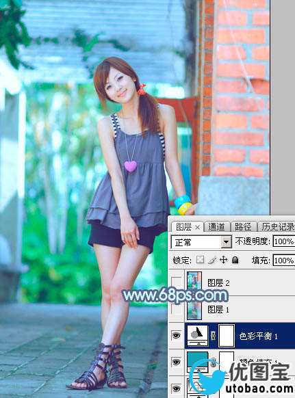6、创建色彩平衡调整图层,对阴影,高光进行调整,参数及效果如下图。这一步主要给图片增加淡蓝色。